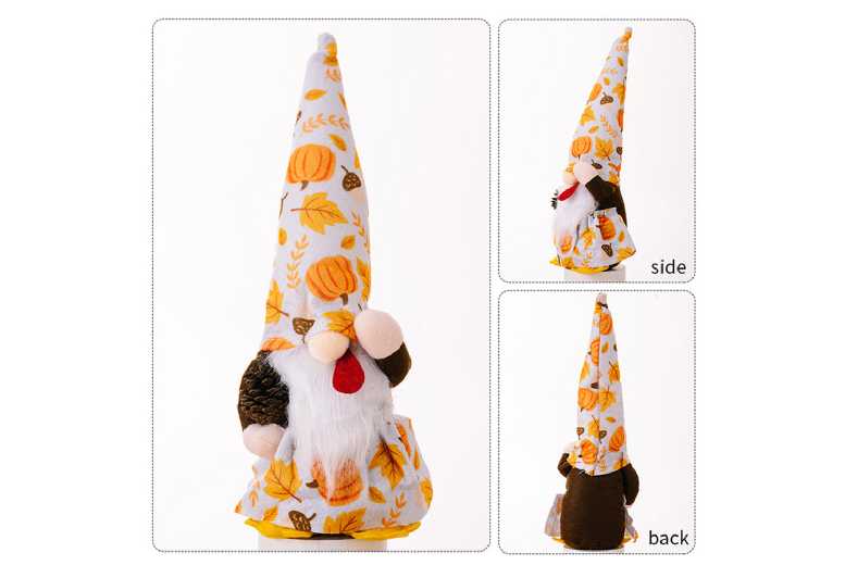 Low Maintenance: Simple care instructions ensure longevity. High-Quality Fabric & Polyester: Soft, durable materials for lasting style. Ideal Gift: Great for housewarmings or festive presents. Two Unique Styles: Choose between Pumpkin or Pine Cone holding gnomes. Perfect Size: 34cm tall for versatile placement on tables, shelves, or mantels. Festive Thanksgiving Design: Adds instant seasonal charm to your home.